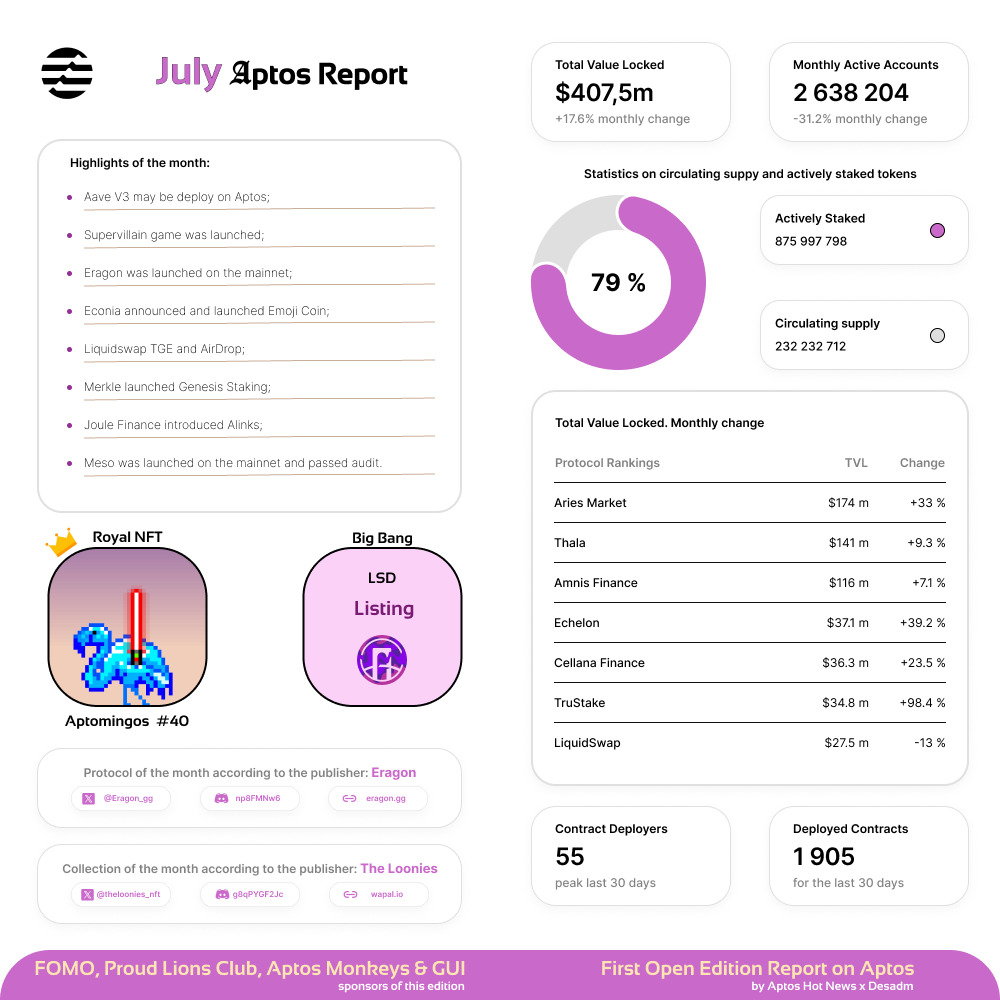 We present to you the second edition of the unique initiative, the Aptos Monthly Report. These are the first NFT reports on Aptos in an Open Edition format. The June edition sold nearly 500 copies, and the Aptos Monthly Report has become an independent project.